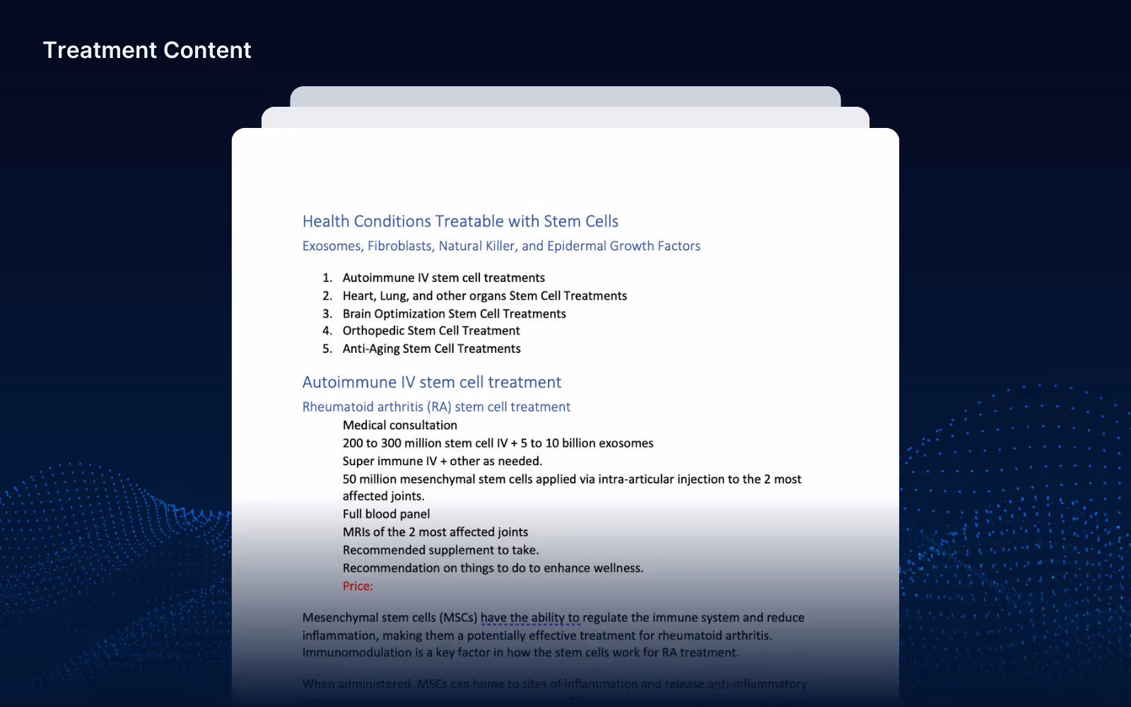 - Treatment Navigation: Easy-to-follow navigation paths to help users quickly find the right treatments.